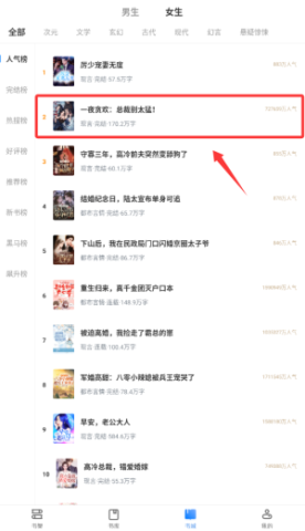 2. 进入页面后,找到人气榜,挑选心仪的小说并点击。