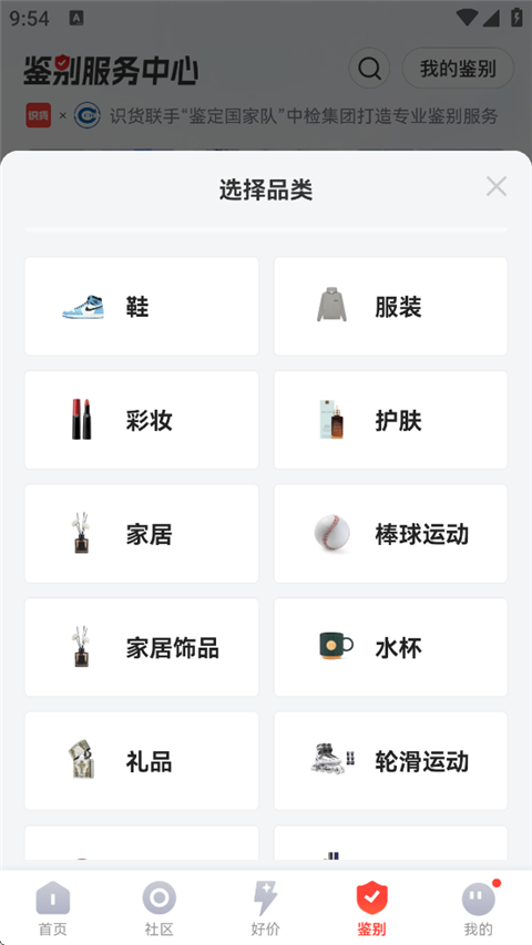 2、选择鉴别商品的品类。