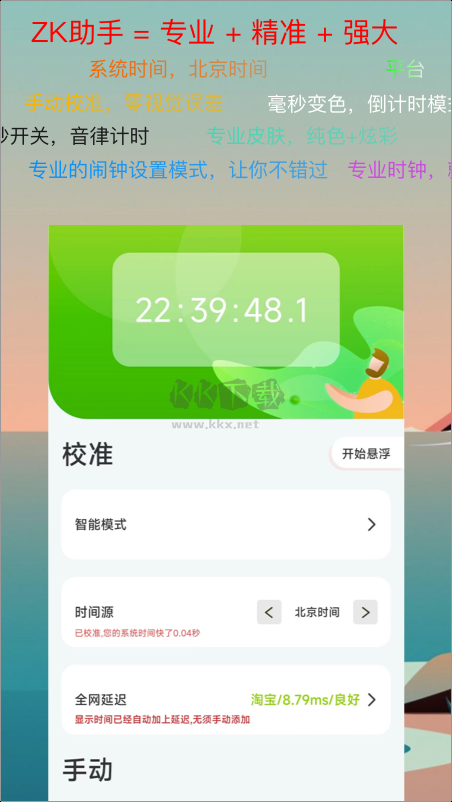 3.悬浮时钟:可设置将时钟显示悬浮于各个应用之上,它广泛适用于学习、工作、购物、运动等需要便捷计时场景,更是准点抢购秒杀好帮手