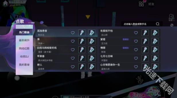 4、通过游戏内的歌曲目录选择自己喜欢的歌曲进行演唱。
