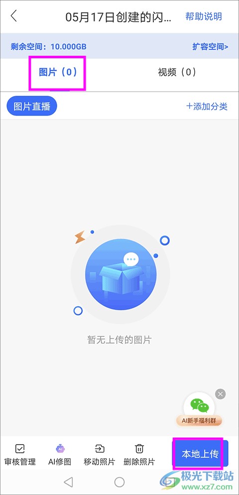 2.进入相册后,选择“本地上传”选项。