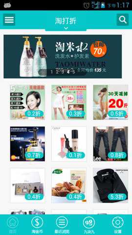 2、淘打折商城中有上百家国内外知名品牌,以及与女性相关的商品,种类多样,让您随时随地找到您想要的商品。