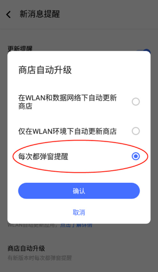 4、然后选择【每次都弹窗提醒】即可自动提醒更新。