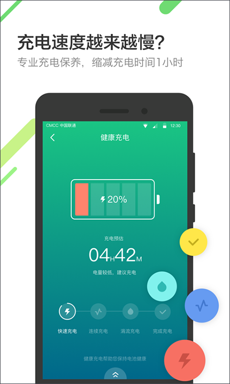 快速省电、超级省电、模式切换、低电量提醒、内存清理,全方位智能省电,让爱机更持久。