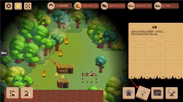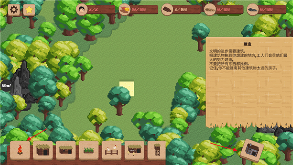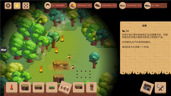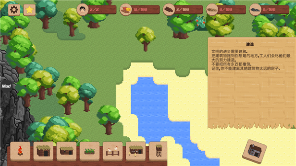 1、像素风格,融合模拟经营和策略战争,必须通过收集资源,扩大村庄规模,保护它免受不同时代的敌人攻击,推进文明。