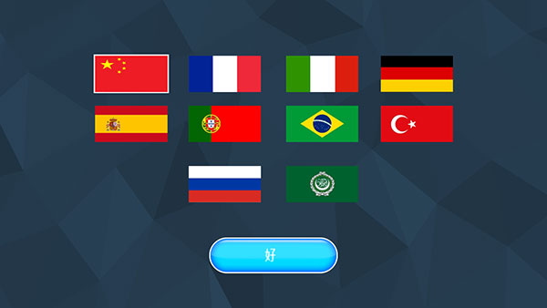 进入游戏后的第一件事,就是选择语言,这里选择中国国旗即可将游戏语言设置为中文。
