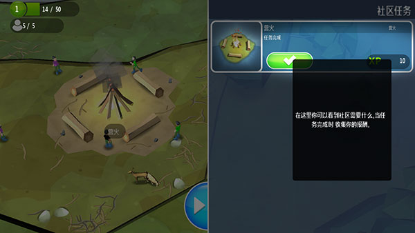 1、点击营火即可了解社区需要什么。