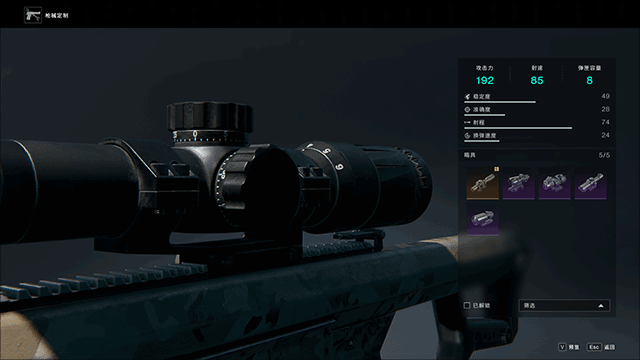 一把武器的下限是由其自身决定的,而上限取决于你的创造力,每把枪都有可替换的零件,通过探索世界和完成任务,你可以获得各式配件,或许是倍率更高的瞄准镜,或许是消音更好的枪口,抑或是装弹量更大的弹匣,通过调整配件来制作拥有完美手感的武器吧!除去配件的支持,每把枪在被制作出来后还可以对其在某些方面进行精校,可以反复提升其该方向的强度。