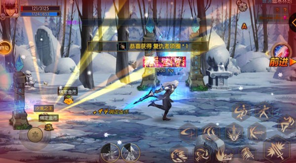 4、横版激情闯关模式,面对成群结队的怪物与敌人,运用超炫的强大技能将他们一举打倒,展现自己的实力。