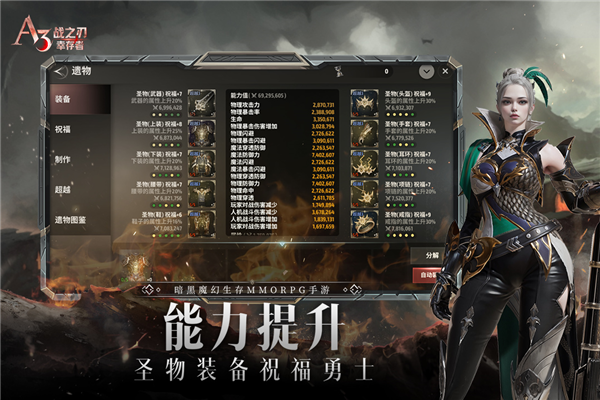 3、大型多人在线角色扮演手游,战之刃幸存者是逃跑与杀戮与MMORPG的结合,玩家进入游戏扮演女神的使徒,选择不同的职业战斗。