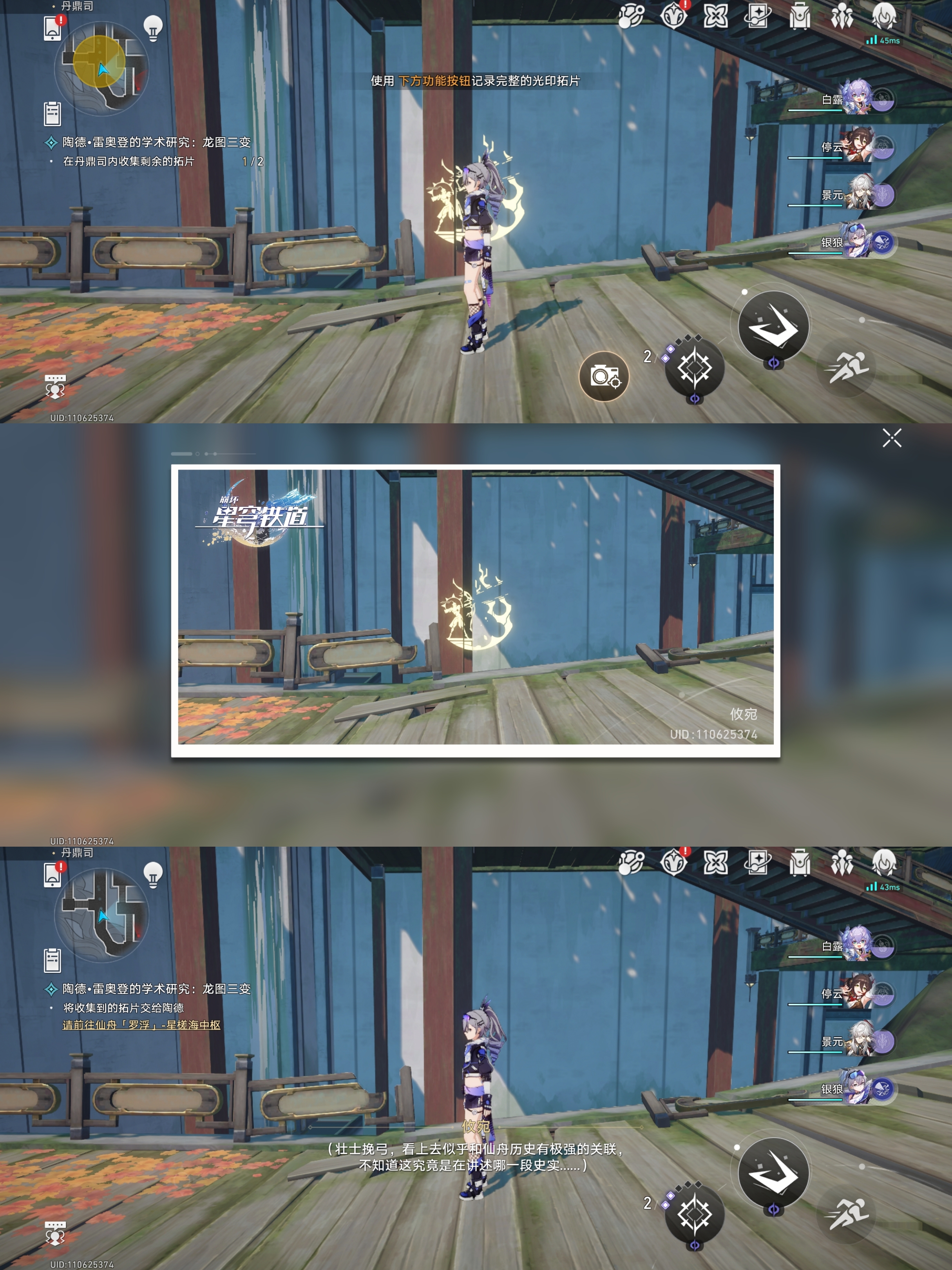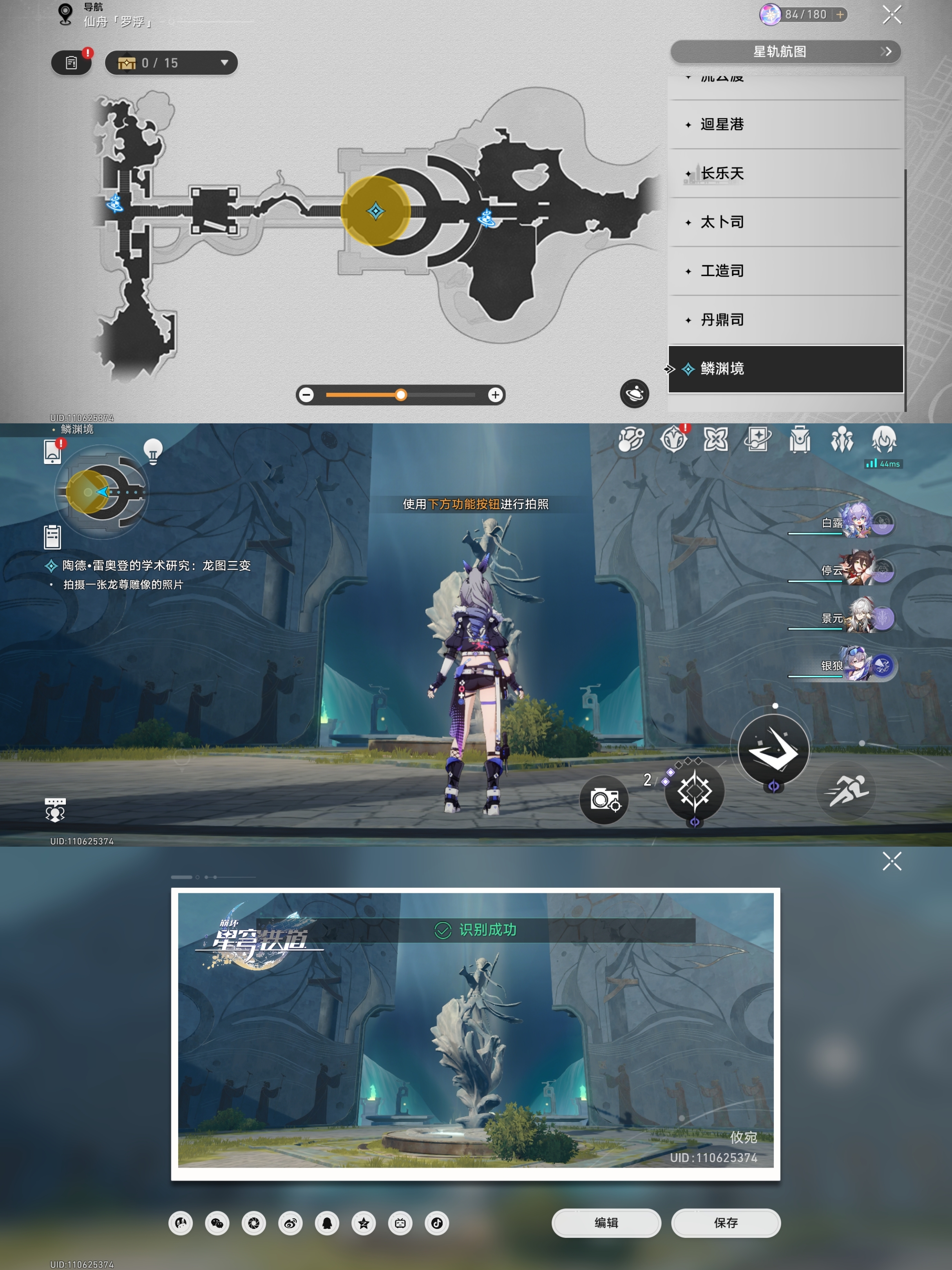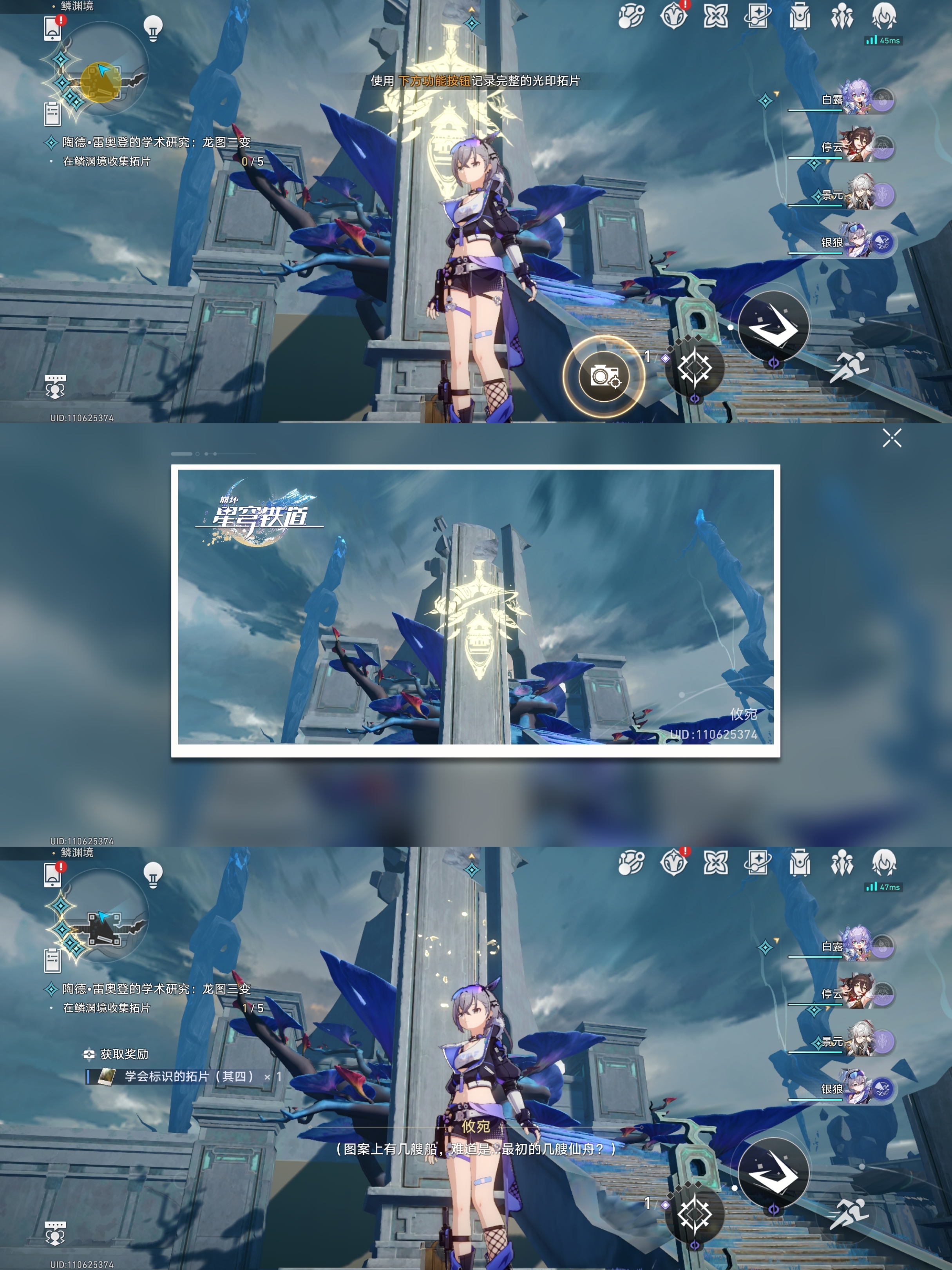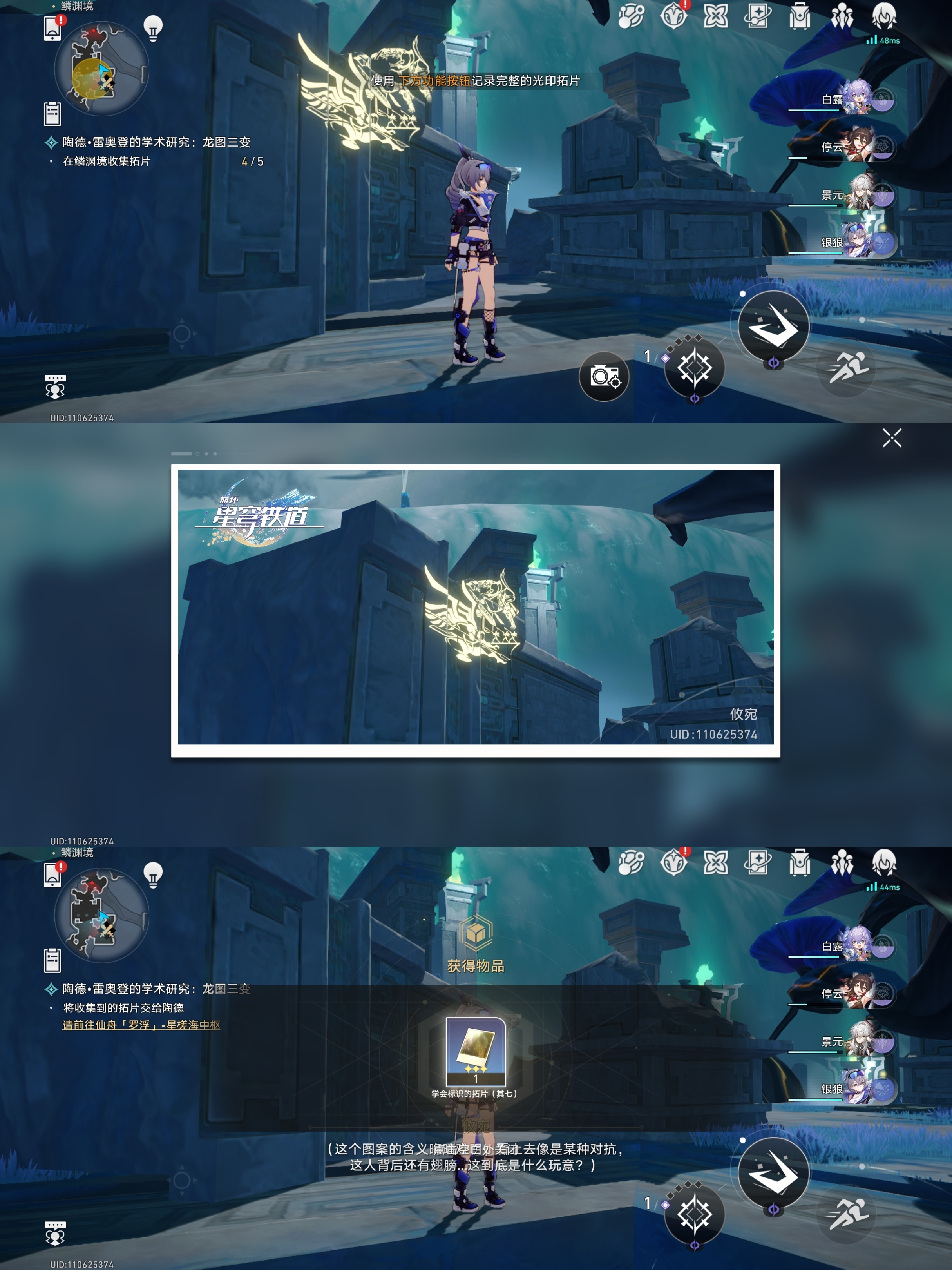 对话完成后会让我们根据指引去找龙尊雕像、历史壁画、持明卵、龙形的光芒进行拍照