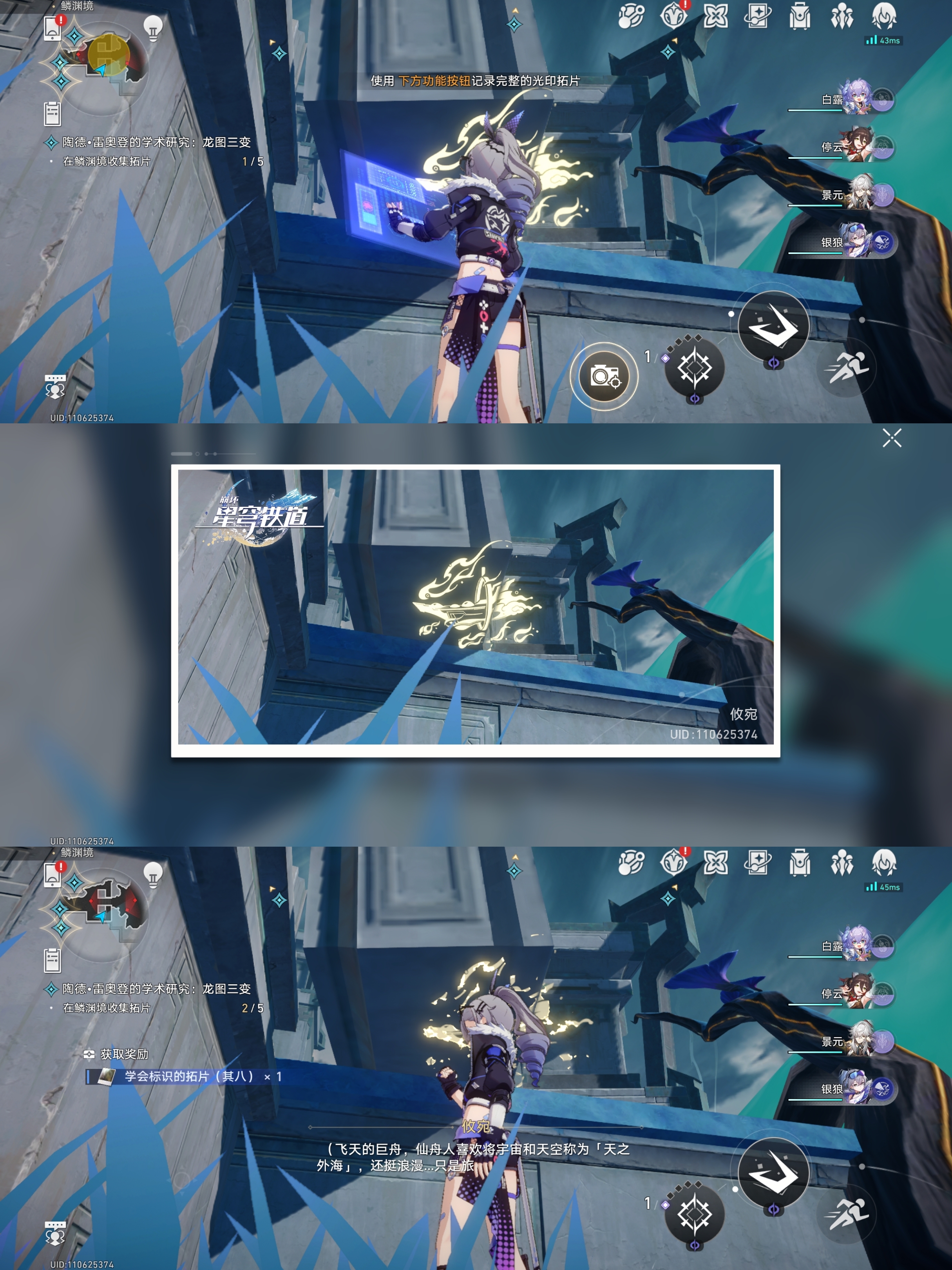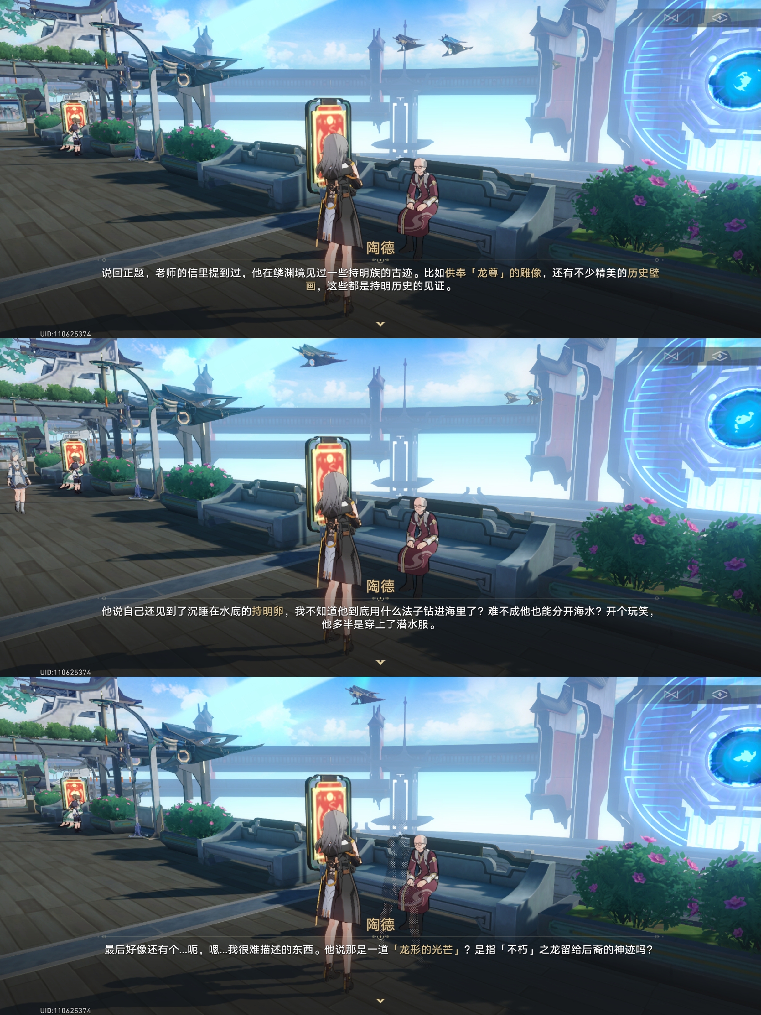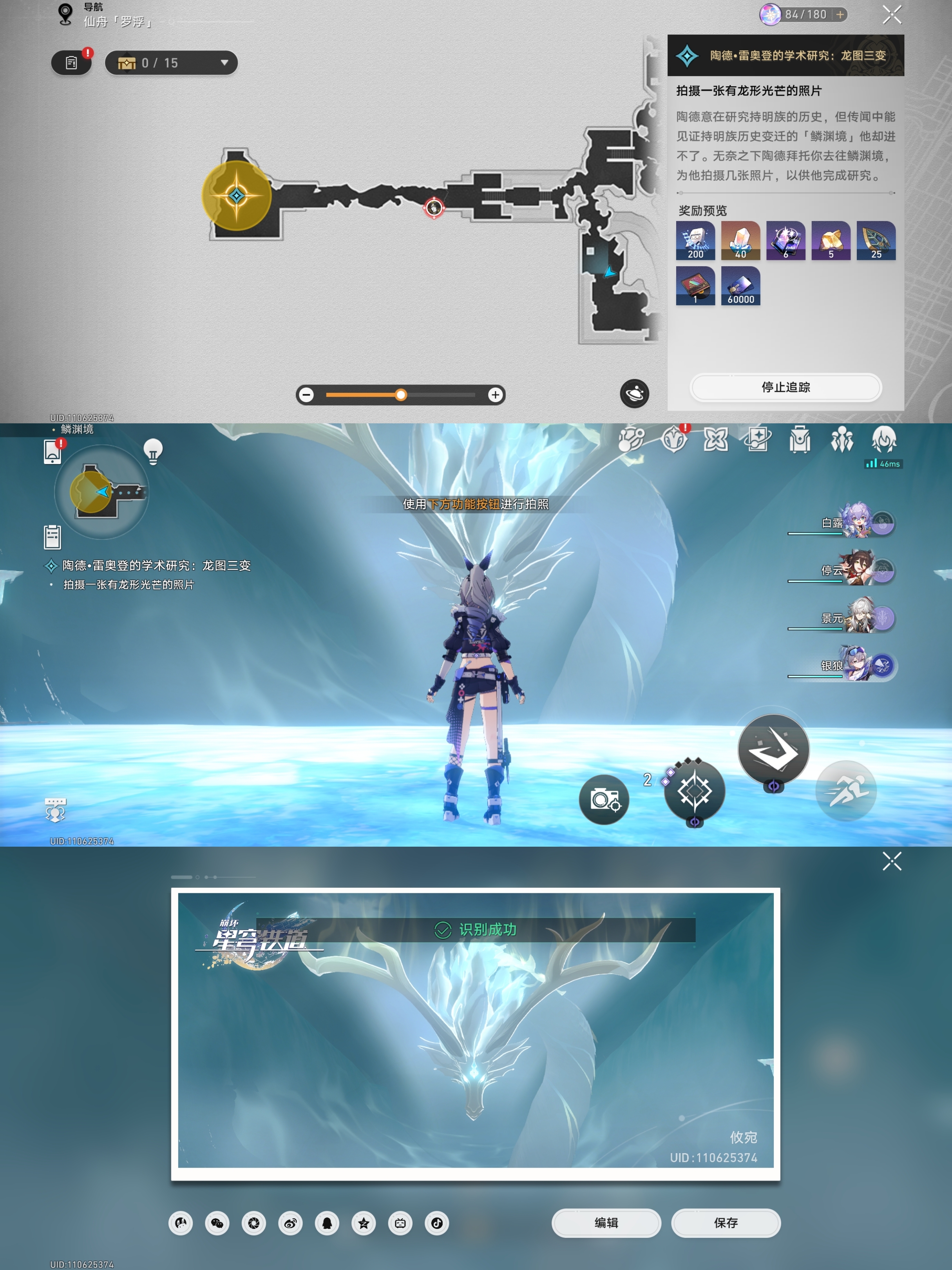 对话完成后会让我们根据指引去找龙尊雕像、历史壁画、持明卵、龙形的光芒进行拍照