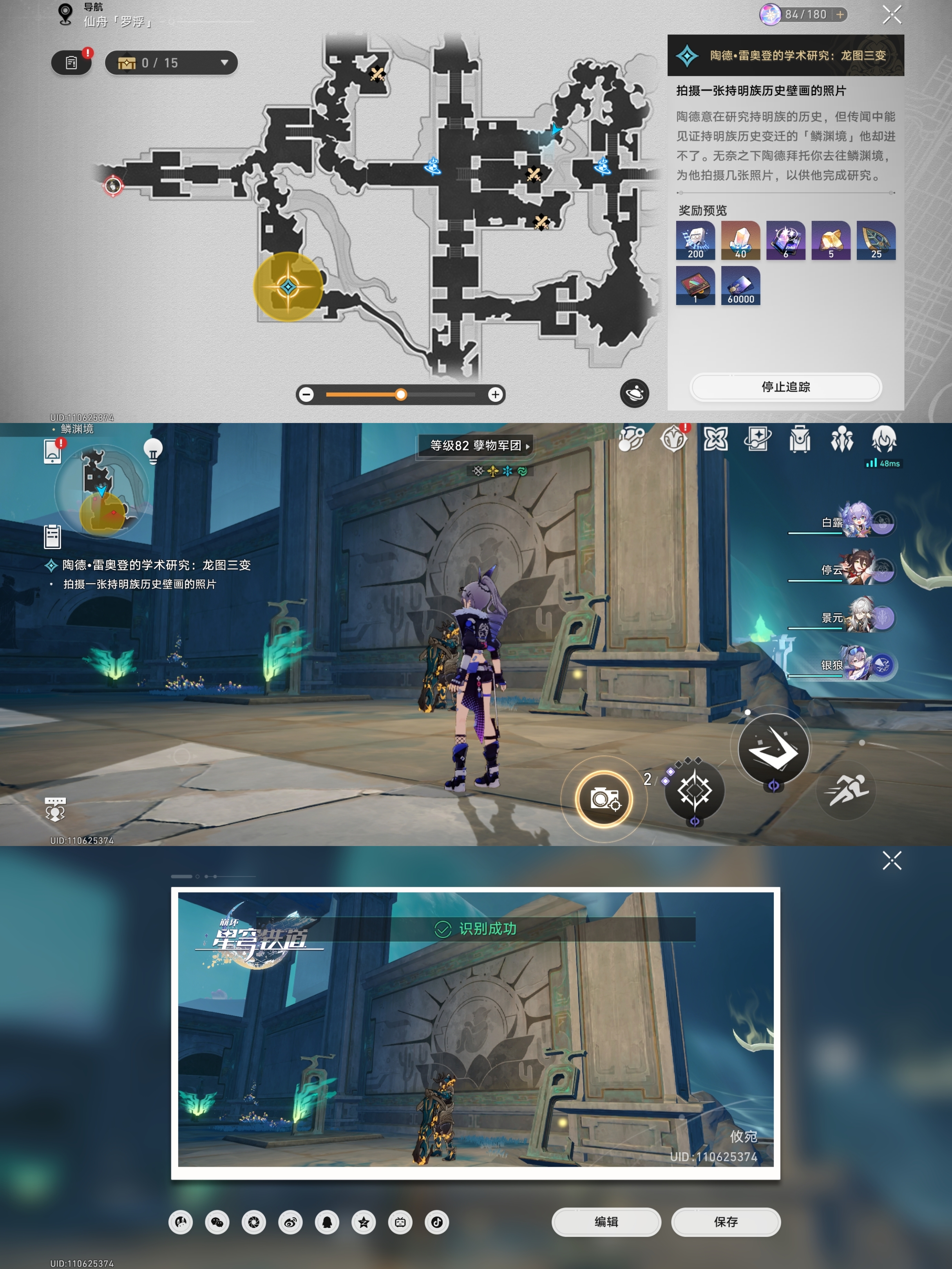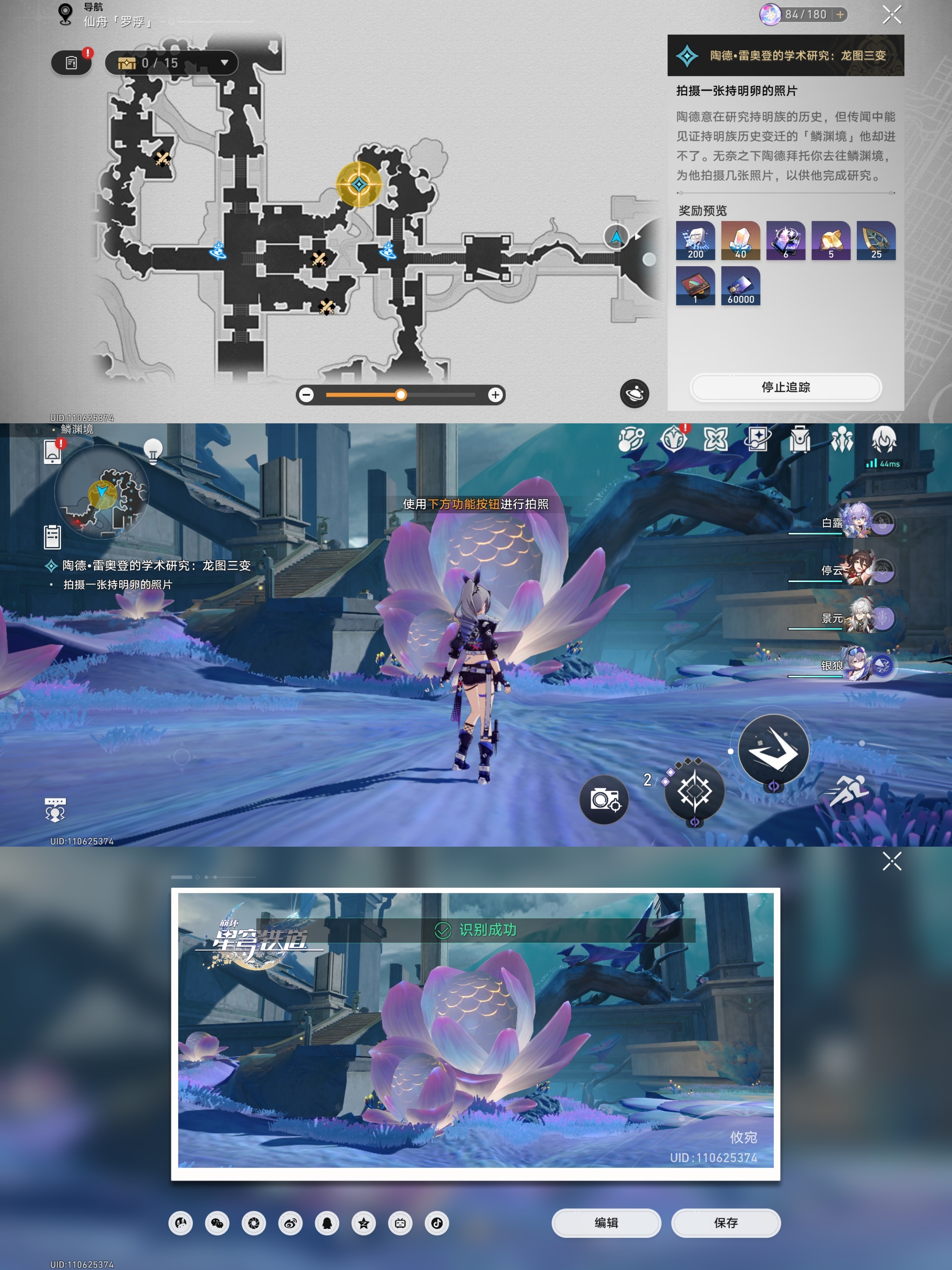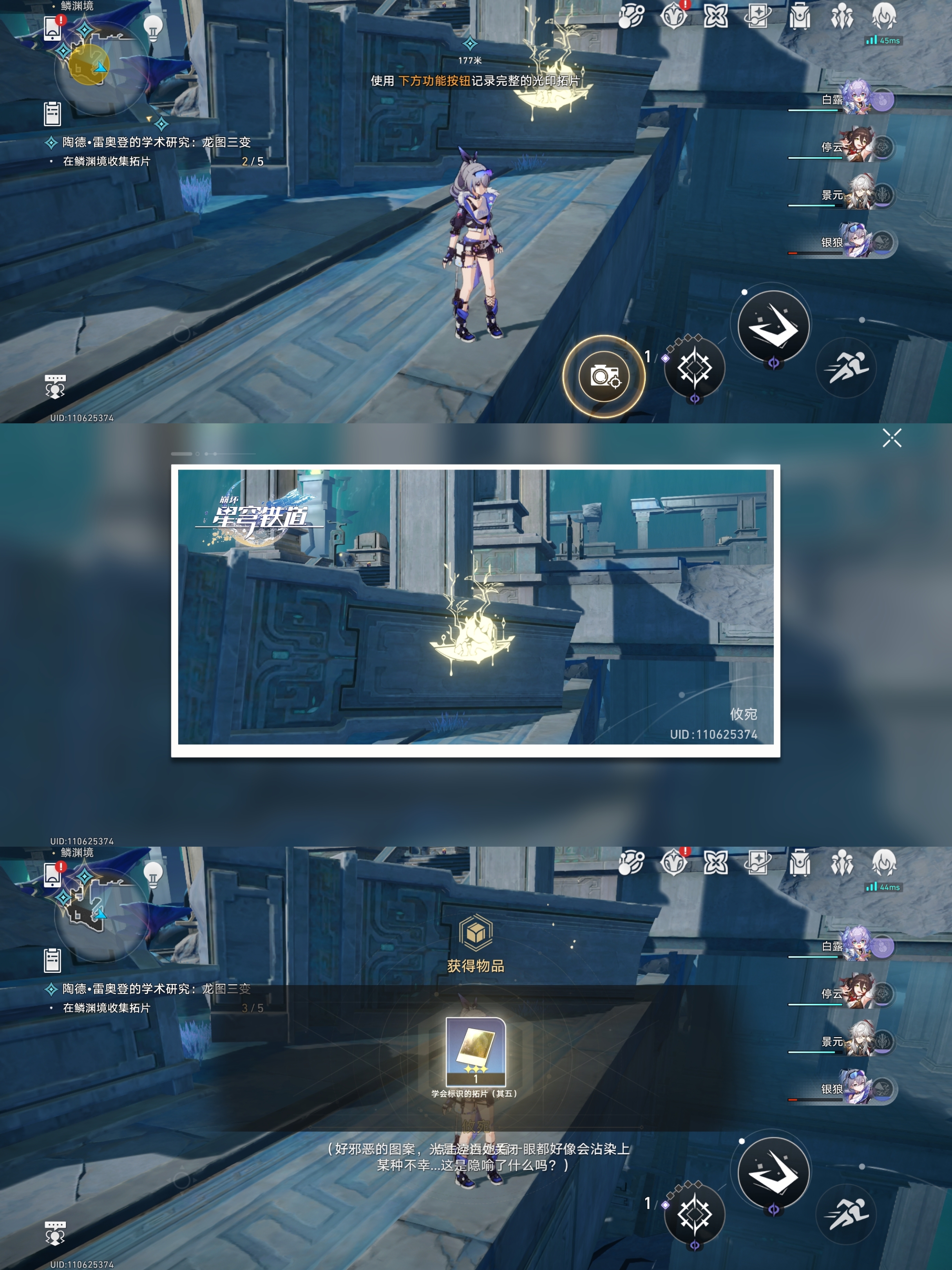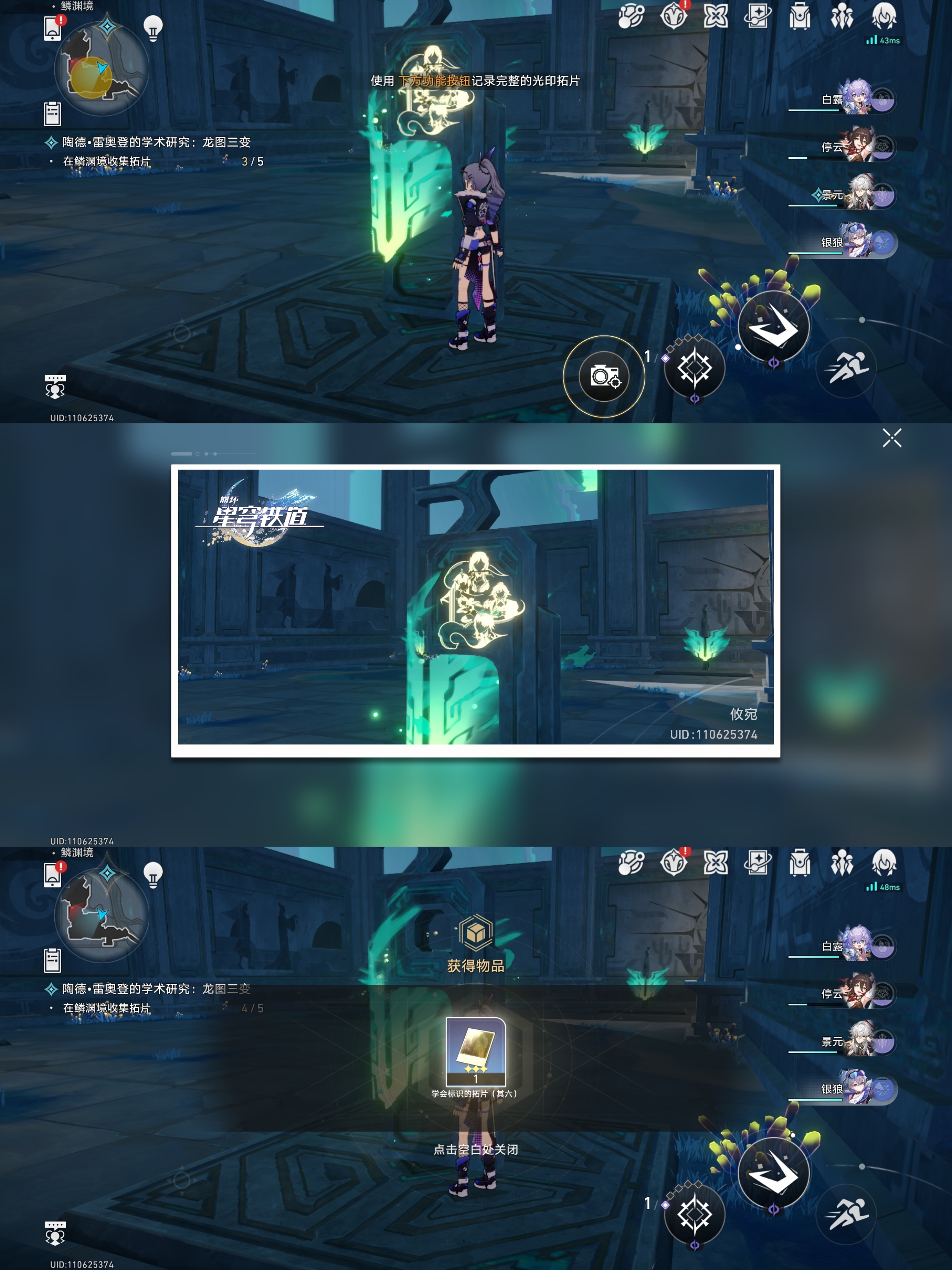 对话完成后会让我们根据指引去找龙尊雕像、历史壁画、持明卵、龙形的光芒进行拍照