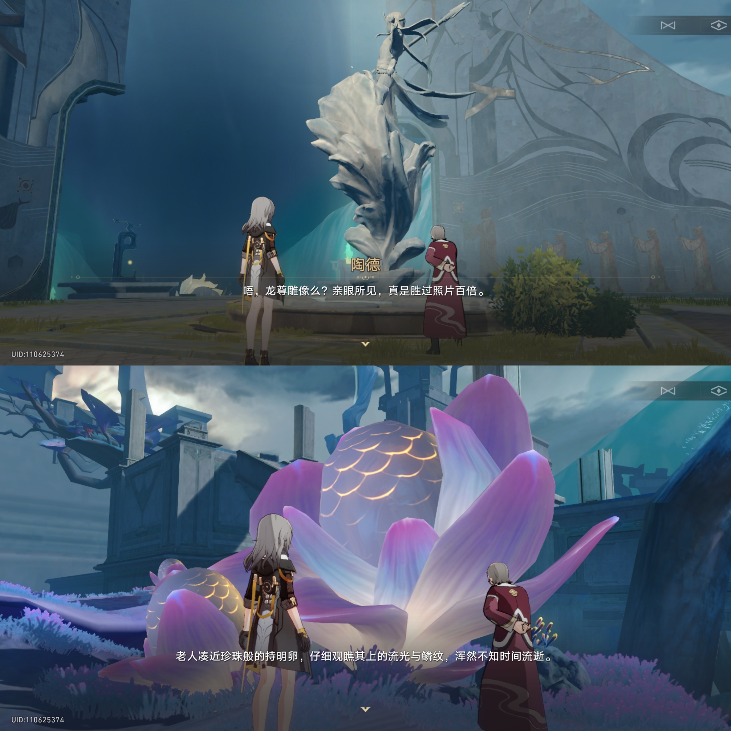 接下来这老登又拜托我们带他去参观龙尊雕像以及持明卵,我们根据指引带他去参观