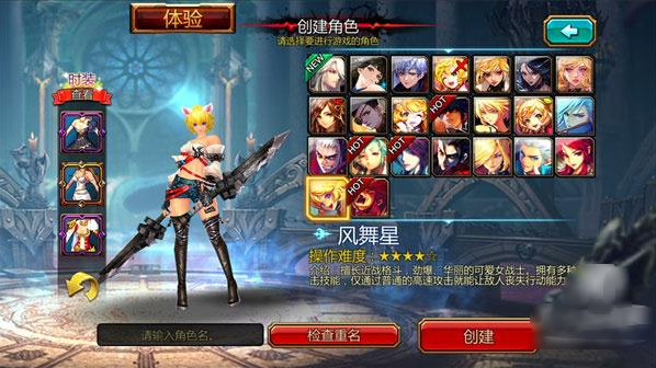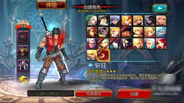 5、玩家可以选自右边自己的喜欢的角色职业,左边还有不同的时装可以进行更换,最重要的是玩家还需要给自己的角色起一个名字哦。