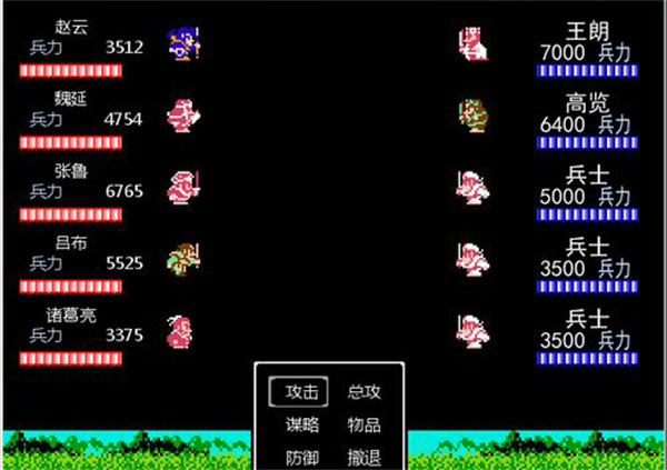 2、游戏采用经典像素美术风格,角色造型与场景设计极具三国韵味,配合昼夜交替与天气变化,营造出身临其境的古代战争氛围。