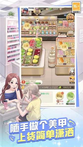 在忙碌的商业经营之余,别忘了享受生活!可以自由逛街上货,或在你的私人豪宅里放松休憩。游戏采用轻松放置玩法,碎片时间也能轻松管理你的时尚百货城!