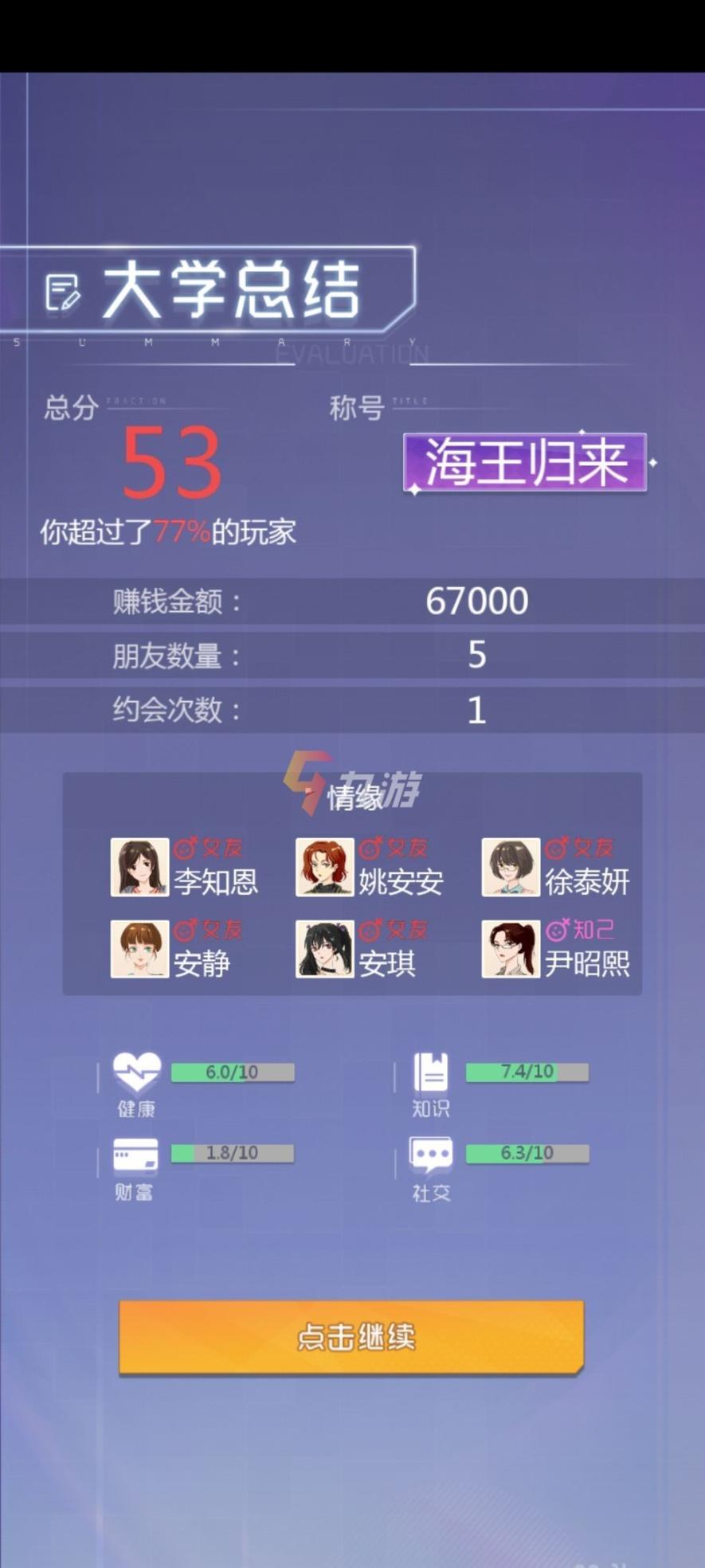 游戏开始后,先观看广告将打工收入提升至3000左右。这一步主要是为了解锁所有角色。如果没有行动点,就去美食街用餐。基本上要在第二周周五之前将所有角色的好感度刷满,所有属性提升到170以上,同时要保留50行动点用于触发惊喜事件。这样就能算是一个不错的开局了。