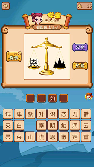 2、接着根据所给出的图片,猜出谜底为哪个成语。
