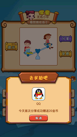 5、每天的首次分享还可以获得金币来兑换提示次数。