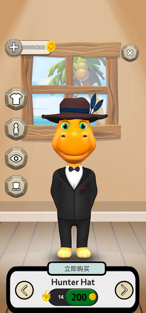 3、右侧的衣架按钮,可以为小恐龙换装,购买新装扮和皮肤。