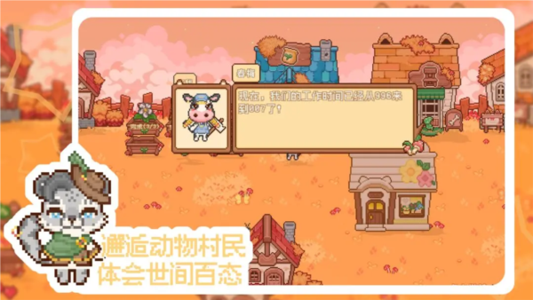 画面风格:采用温馨治愈的像素风格,柔和的色彩搭配悠闲的音乐,营造出舒适的游戏氛围。