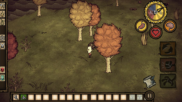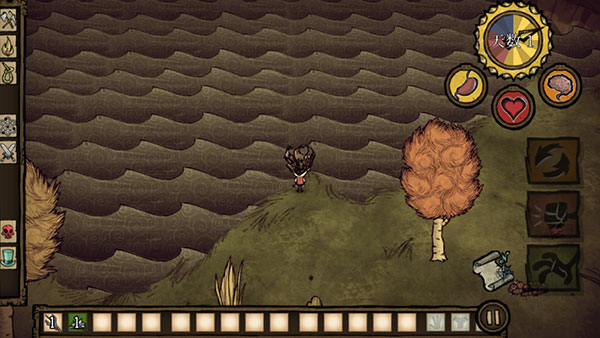1、没有说明,没有帮助,白手起家,在这个世界中探索,操控饥饿的角色尽快找到生存的方法。