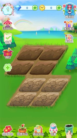 1、首先我们进入花花仙子的魔法花园游戏,刚进入游戏我们并没有什么服装,所以这个时候我们需要去种植解锁服装;
