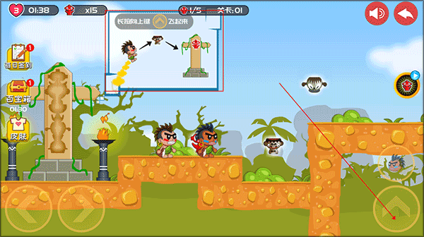 4、每一关难度也是不一样的,有的比较难,需要玩家开动自己的大脑,努力的寻找掉落的宝物图腾,成功的带回村子里面,顺利的挑战以后,还会带给您很多的奖励获取,相当的有趣。