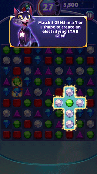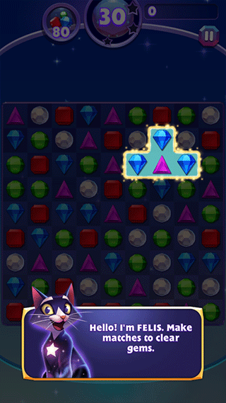 2、玩法非常简单,与经典三消玩法类似,通过三个或以上的相同宝石来进行消除。