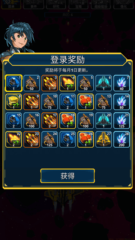2、多款不同款式的宇宙飞船等待着玩家的选择,不同的飞船有着不同的射击模式和弹幕,体验不一样的游戏享受。