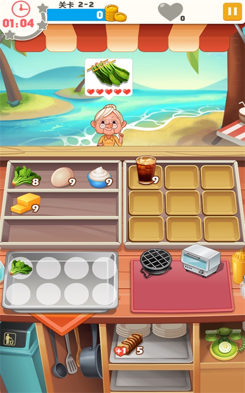 用赚来的钱来更换桌子、椅子和装饰品,提高等级,解锁新的食物来赚更多的钱