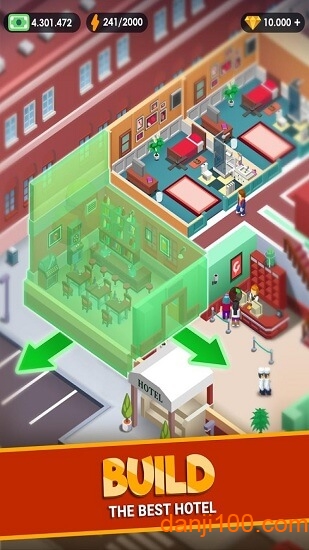 酒店建设:自由设计酒店布局,选择多种设施和装饰。